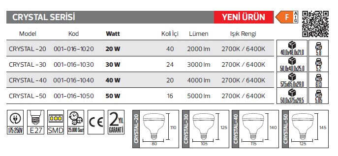 Horoz Crystal-50 50W LED Kristal Torch Ampul 001-016-1050