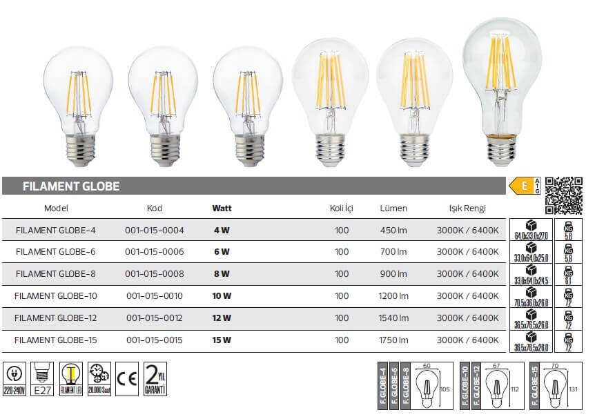 Horoz Filament Globe-15 15W E27 Filament LED Ampul 001-015-0015